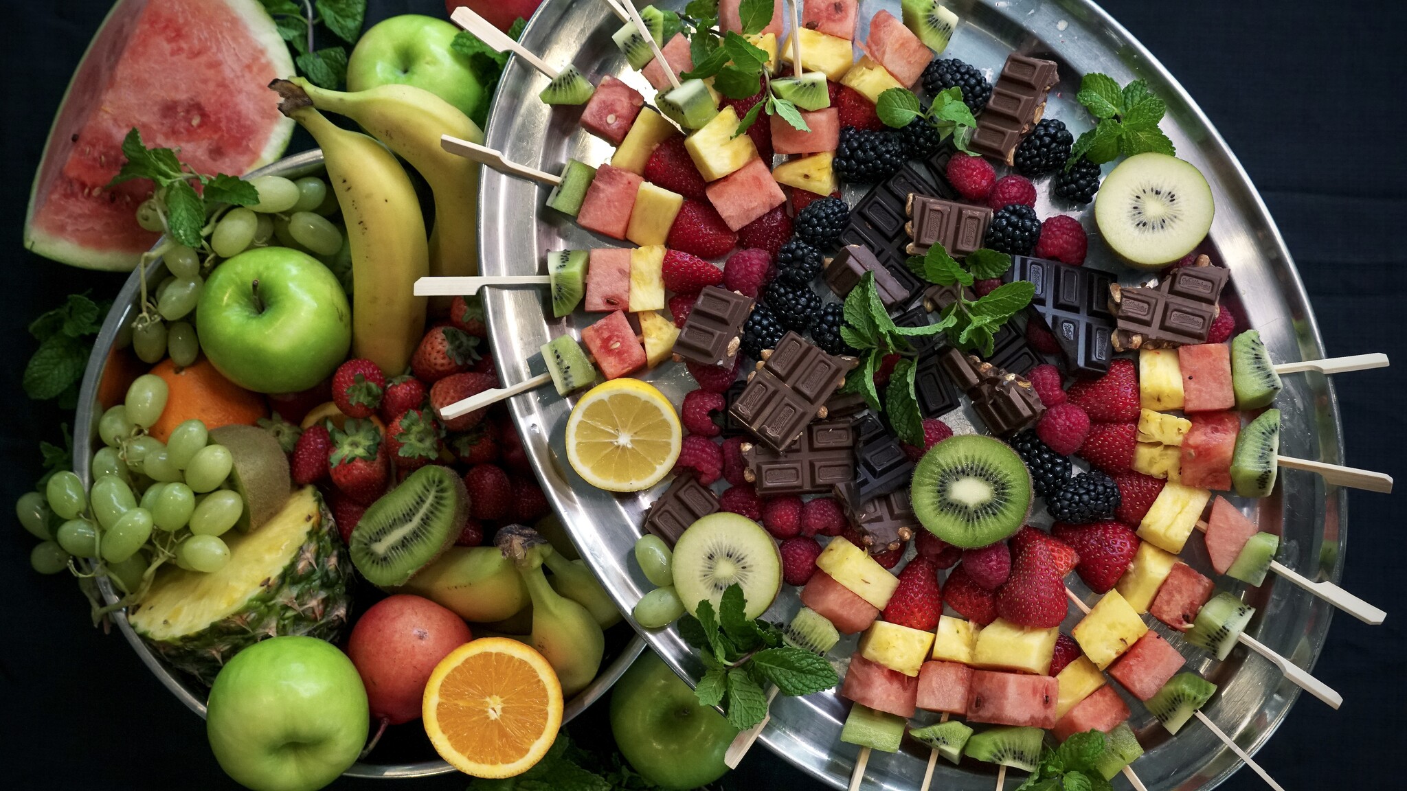 The Platters options contain a combination of whole fruit, cutted fruits, fruit skewers and chocolate.